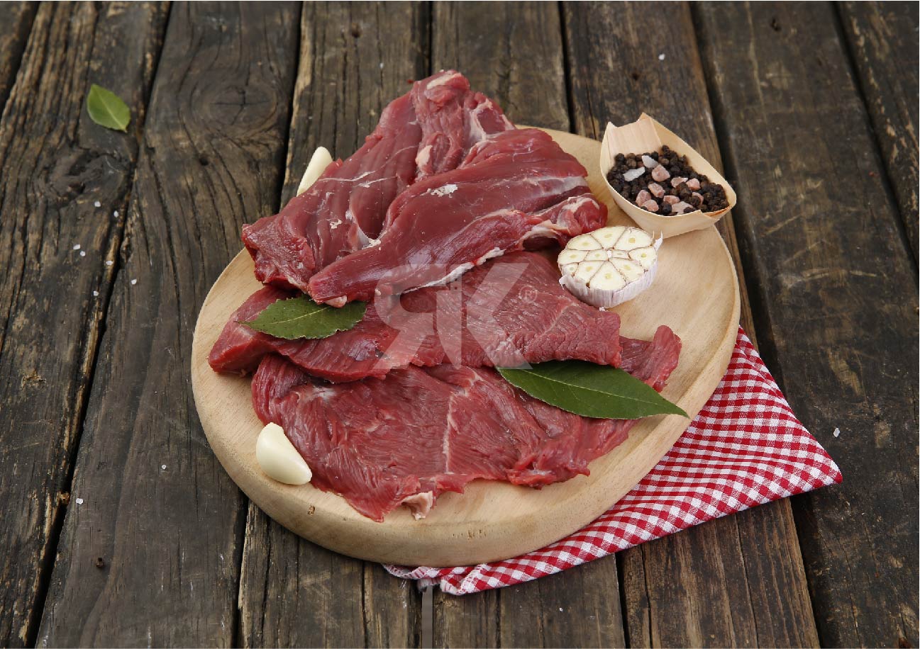 Corte de forma rectangular-aplanado con gran cantidad de tejido conectivo y marmóreo, blando y de excelente sabor.