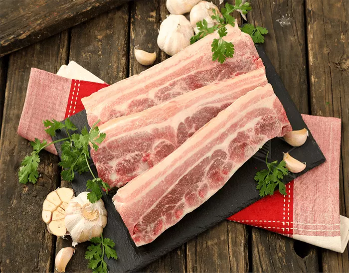 Es un corte que proviene de la costilla unida al tocino
