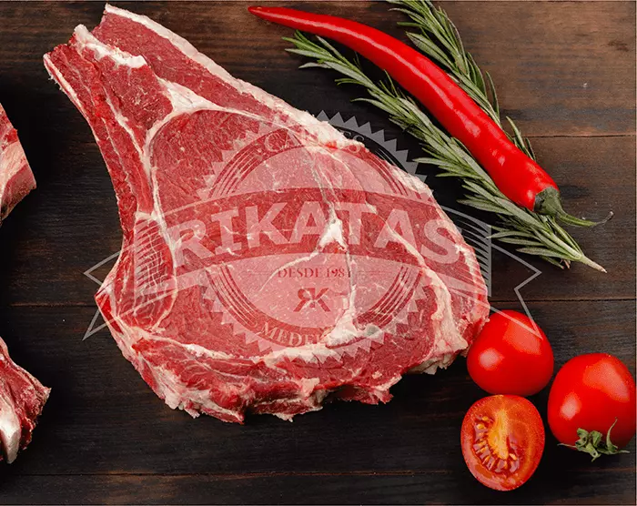El Rib Eye es el corte de la parte superior de las costillas de la res, específicamente entre la sexta y la décimo segunda. SI tiene hueso y adicional también grasa natural.