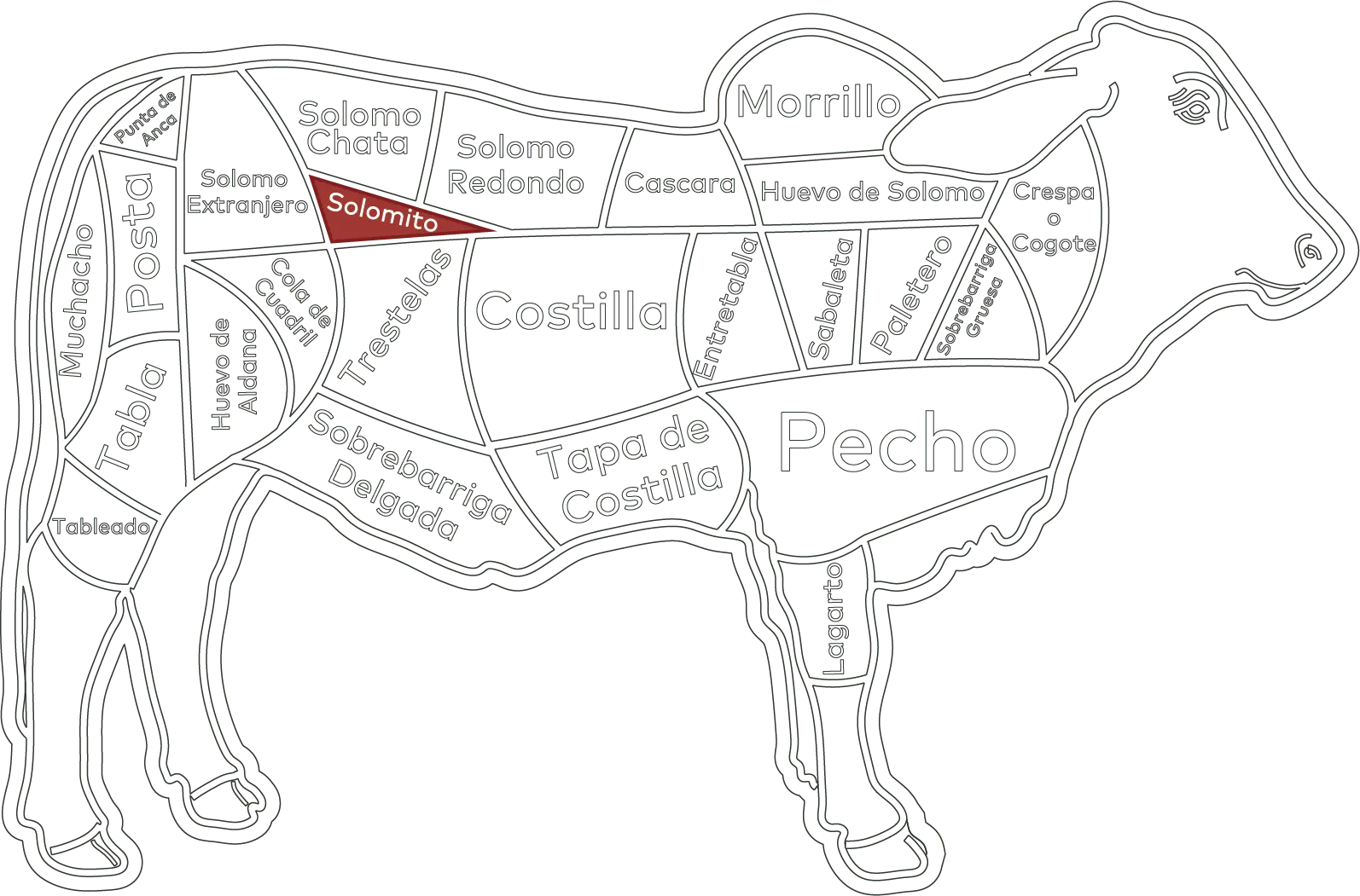 El Solomito se encuentra debajo de las vértebras lumbares, al el cuarto trasero del animal.